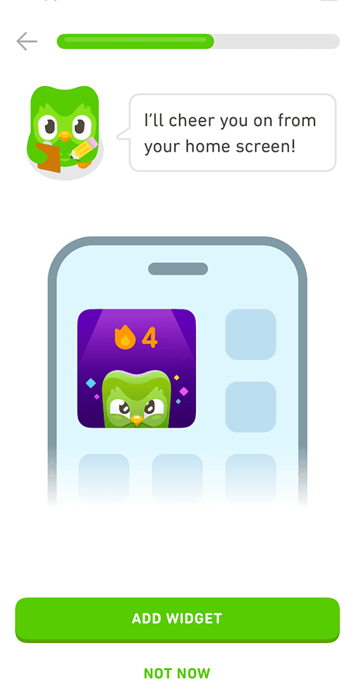 It begins with push notifications, then (repeatedly) urges you to install a widget so Duo can cheer you on from your home screen.