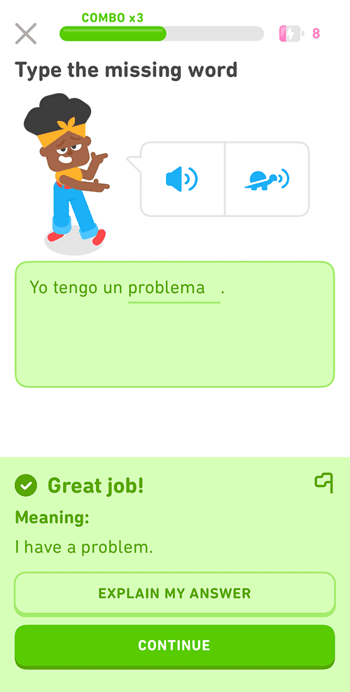 Maintaining motivation is a known crux for many second language learners. This is why Duo, the owl, is there to remind you to practice and cheer you on.