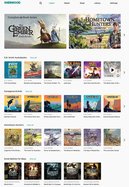 Sherwood Kids is a subscription-based media platform that offers families an ad-free library of audiobooks, podcasts, eBooks, and read-along videos designed for kids ages 3–14.