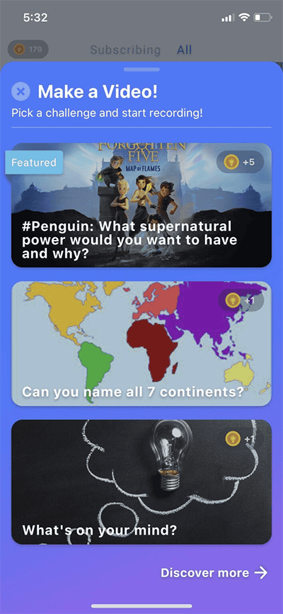 Kids are encouraged to take part in challenges ranging from dances to personal preference questions.