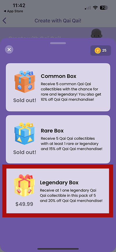 Zigazoo added Non-Fungible Tokens (NFTs) in 2022. Users can purchase (with real money) and trade unique digital art. When we tapped the $49.99 Legendary Box, this was the first time we were asked to provide parent verification.