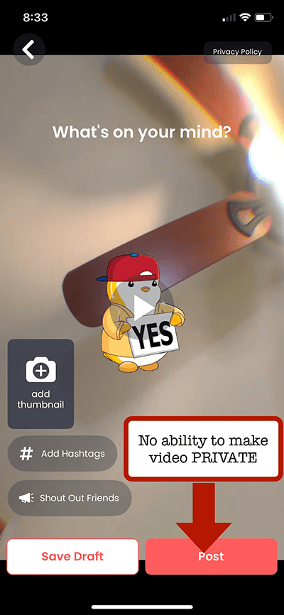 Once again, early reviews of the app highlight the user’s ability to make videos private or public before posting.